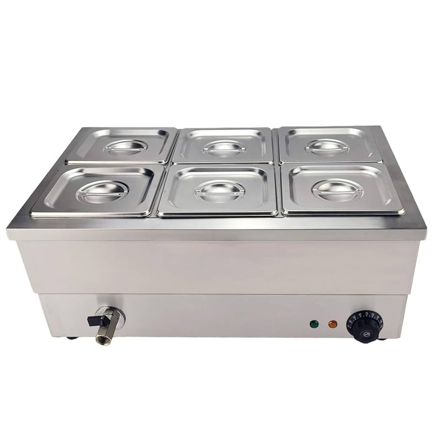 3,699.00AEDIndustrial 6 GN pan bain marie with adjustable shelving, precise temperature control, and AISI 304 construction. 220V/2.5kW. 2100×700×900mm.