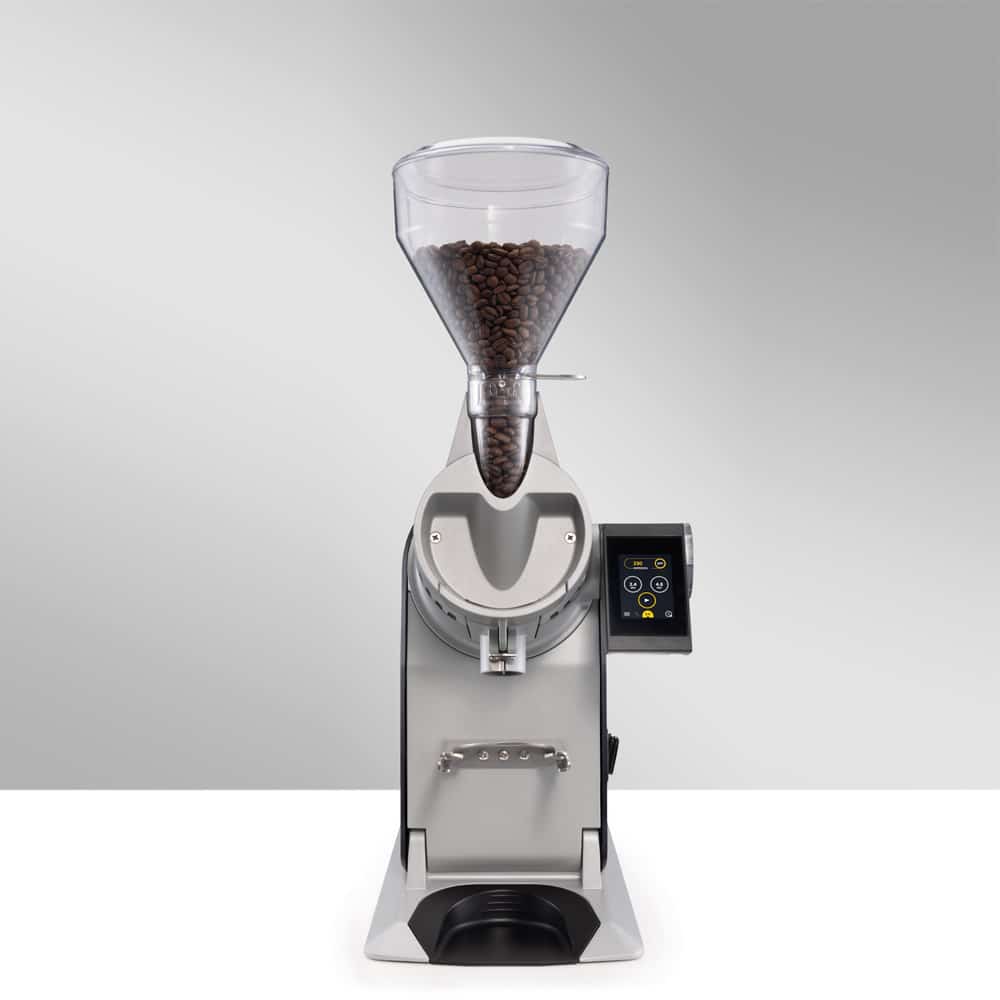 The machine features a vibrant full-color display that enhances the barista experience by showing real-time micron adjustments, burr distance, and saved recipes. This allows complete control, easy repeatability, and perfect consistency during busy service hours.