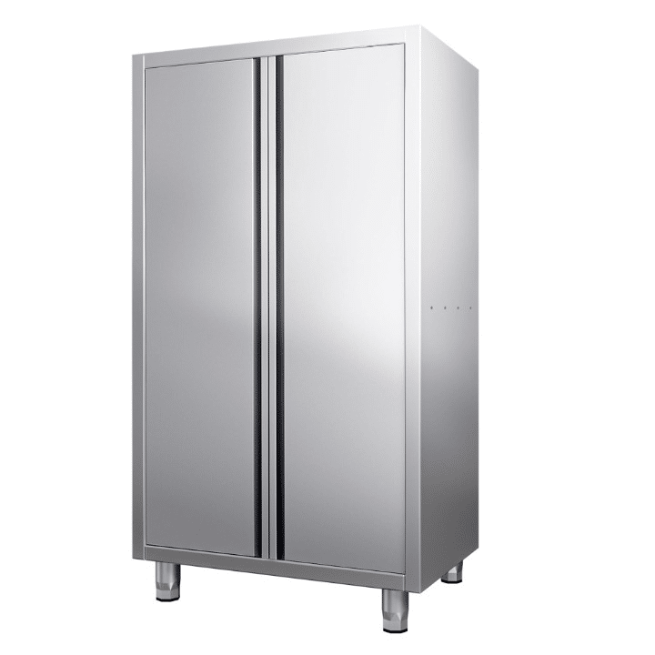 Constructed from high-quality AISI 304 stainless steel, this cabinet provides excellent resistance to corrosion, easy cleaning, and long-term durability in demanding professional environments. The smooth sliding doors allow easy access to stored items without requiring additional clearance space, making it suitable for narrow or high-traffic kitchen areas.