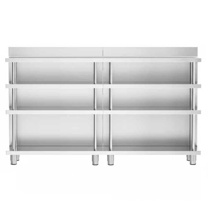 This stainless steel bar work table combines compact design with high storage efficiency, making it ideal for professional service areas with limited space. Its durable construction, hygienic surface, and adjustable height provide long-term reliability and practical functionality for daily commercial use.